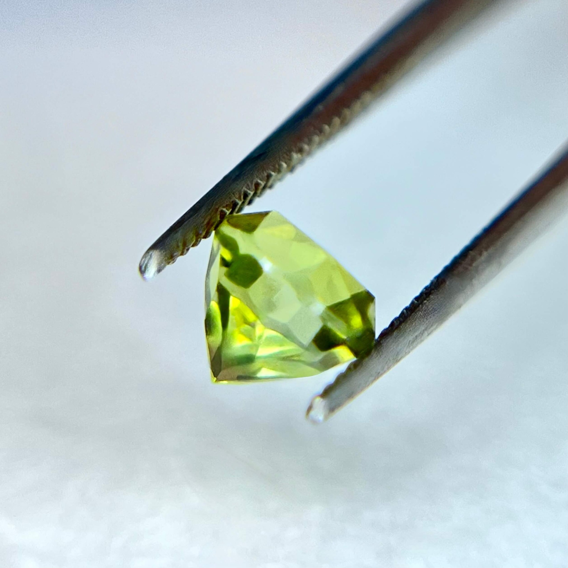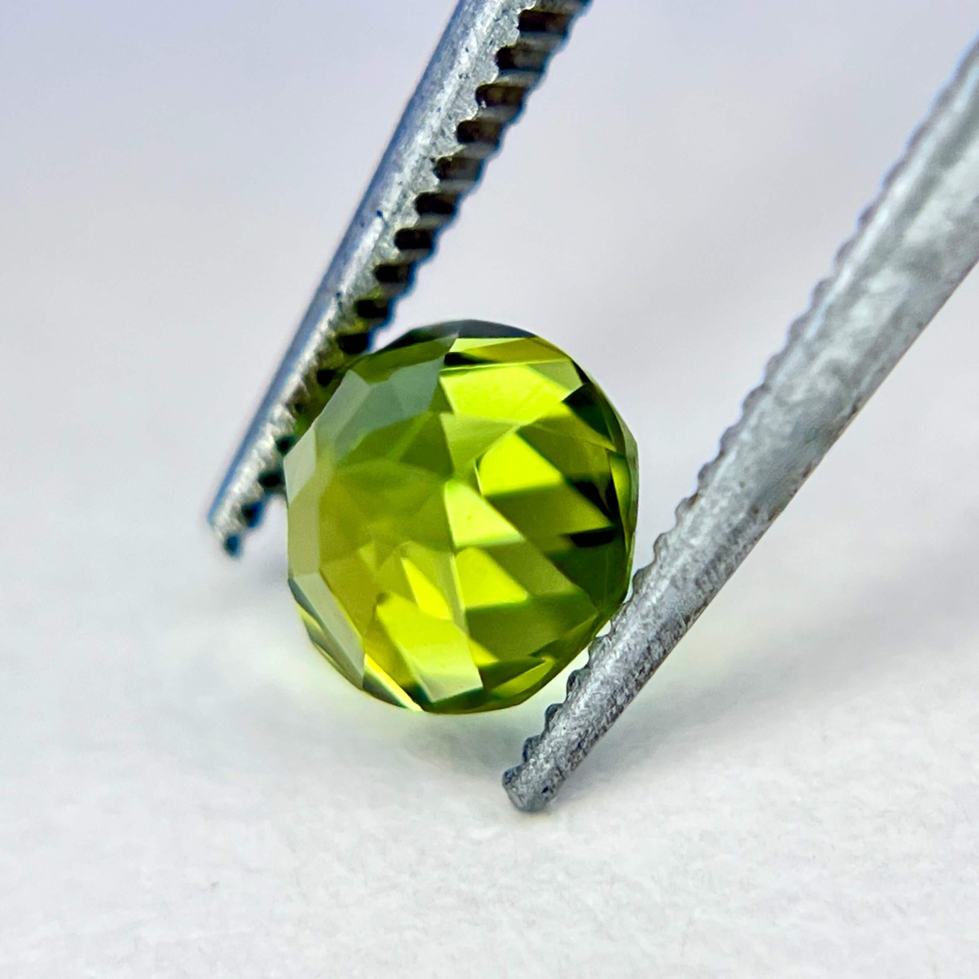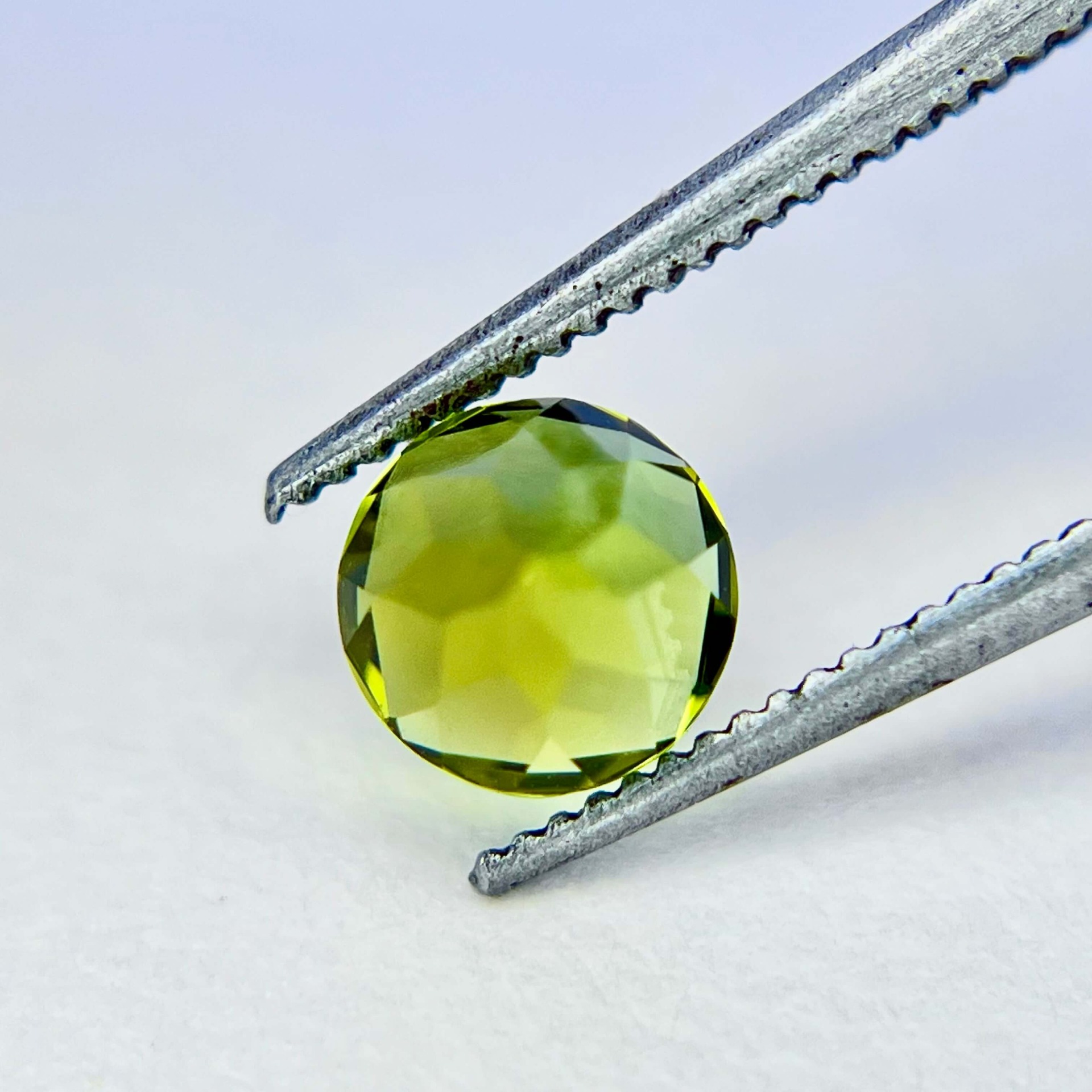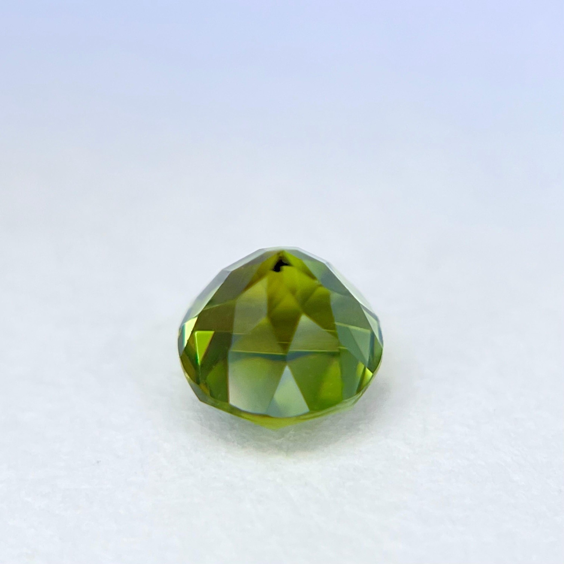 10. 評|來自美國加州著名的喜瑪拉亞礦脈,此枚黃綠色碧璽色澤飽滿而柔和,切割後的圓形外觀與我們引以自豪的美國亞利桑那阿帕契橄欖石系列的圓形火彩橄欖石極為相似,卻擁有更高的硬度與耐久性。無燒無處理、通透乾淨的晶質加上完美車工,使其成為兼具美感與CP值甚高的精品碧璽。