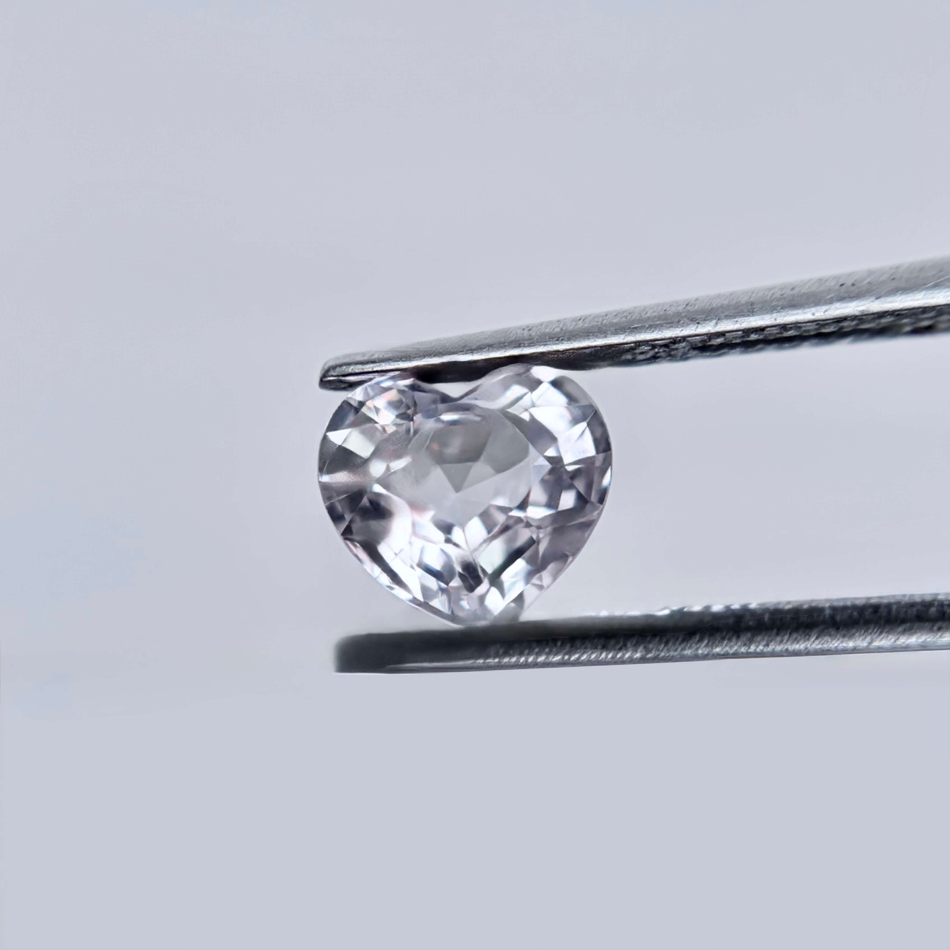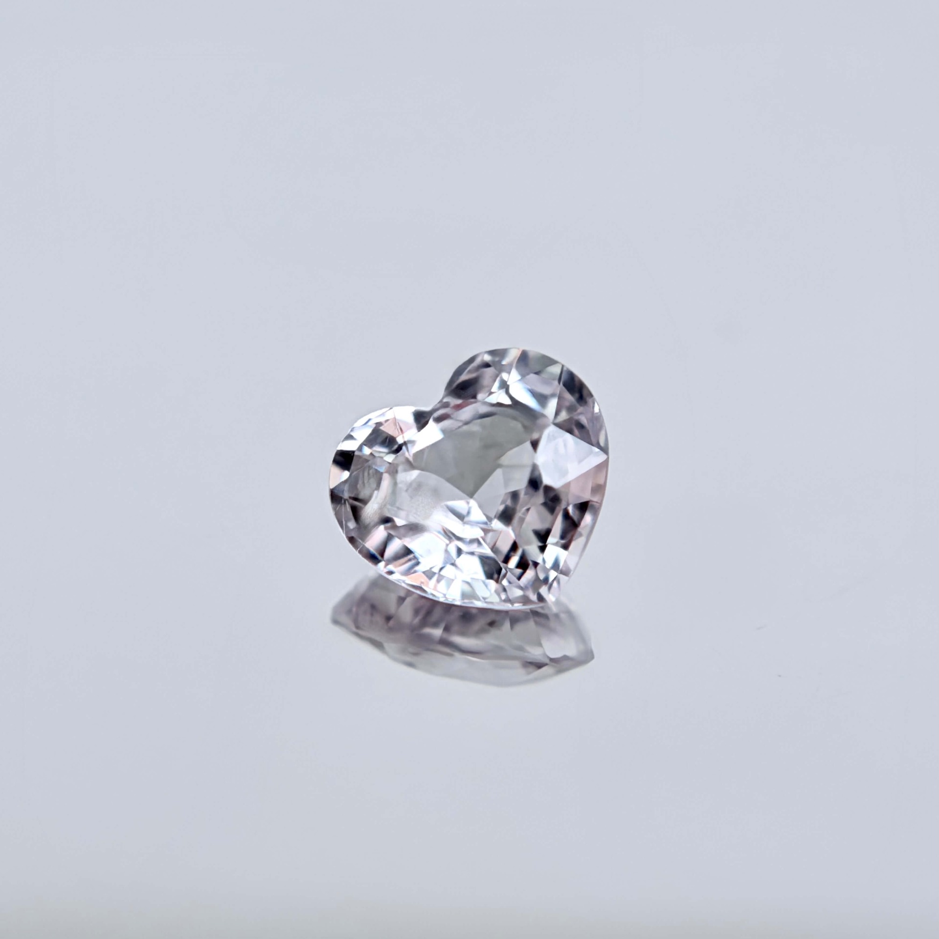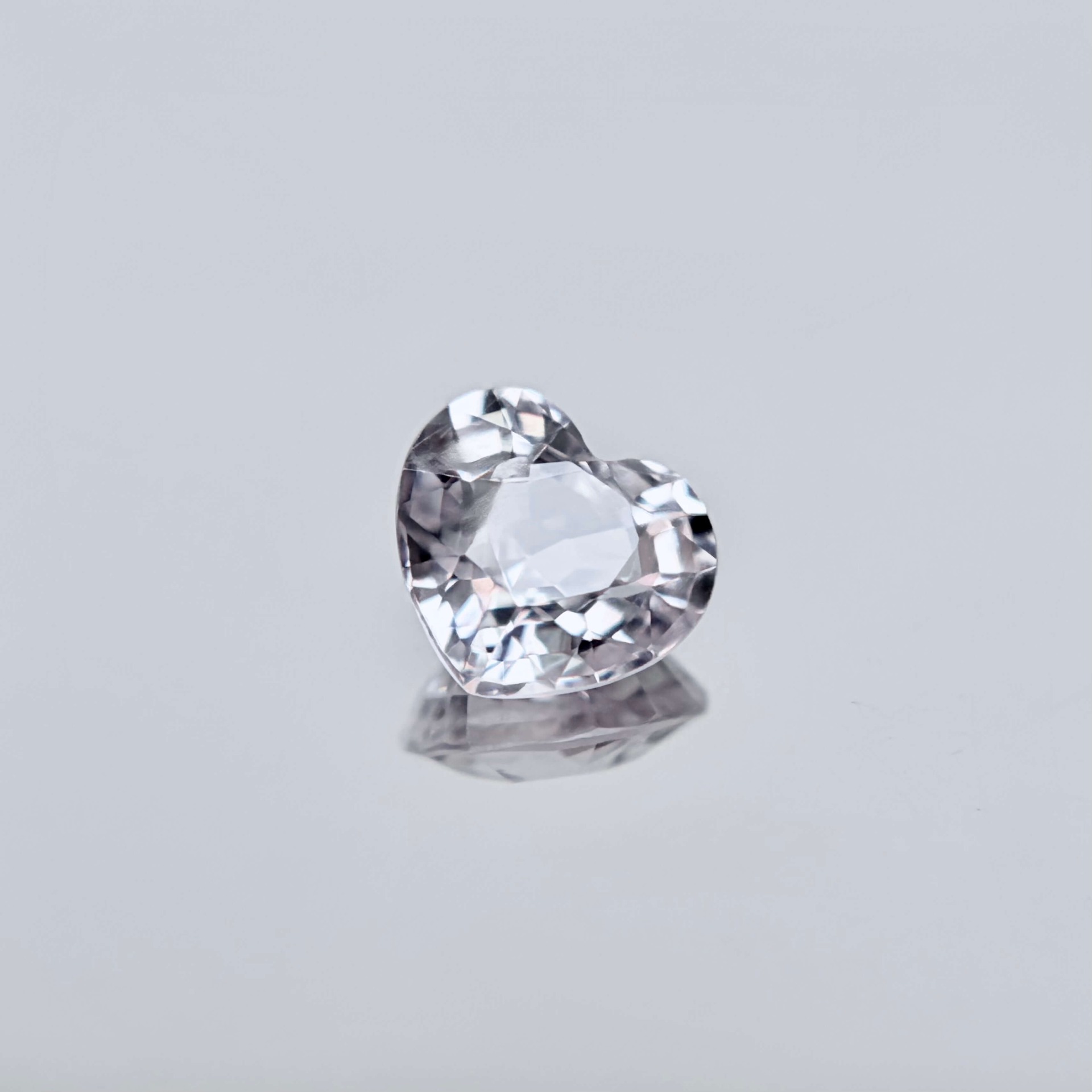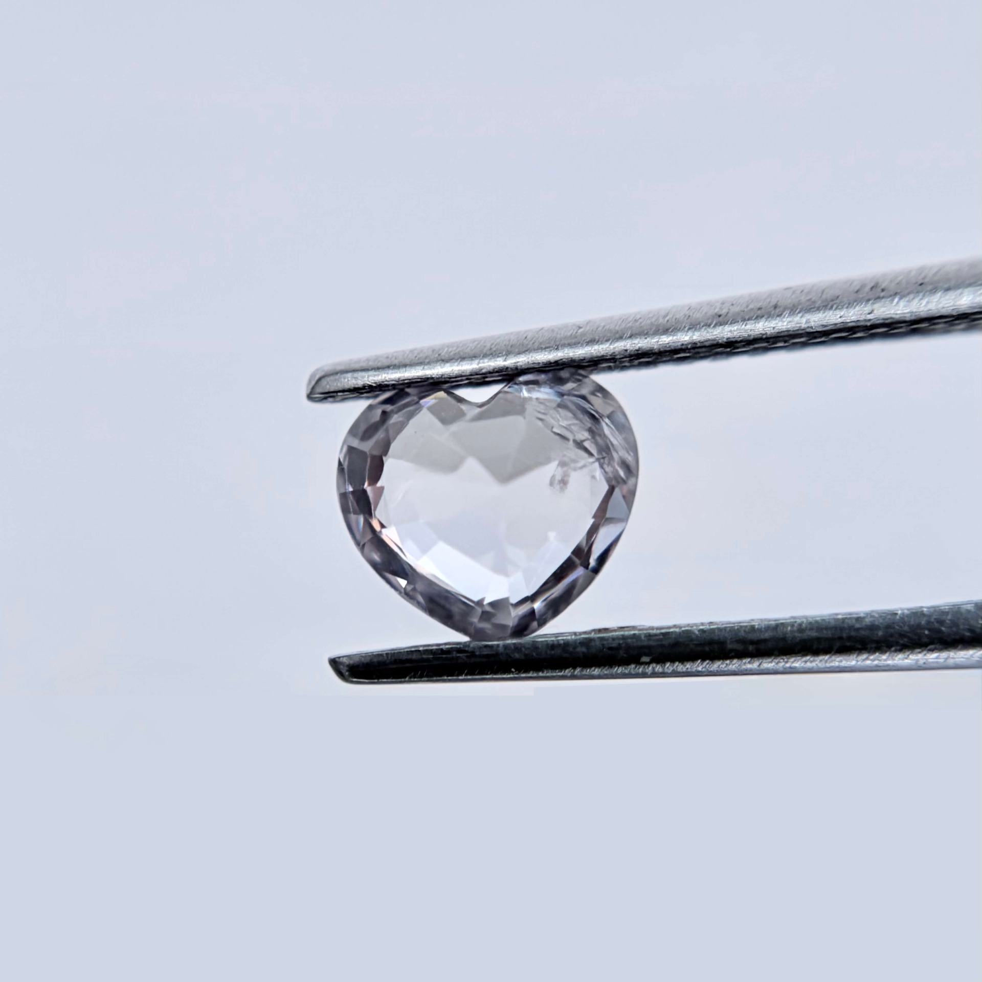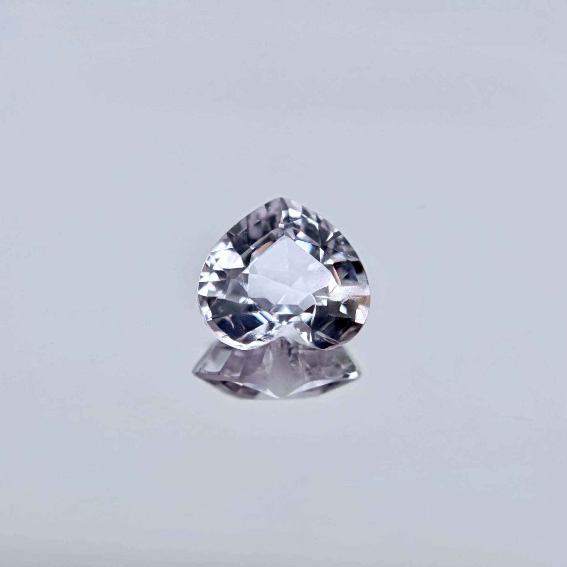 切工採心形車工,對稱性與比例掌握為關鍵。此件作品在輪廓表現上俐落清晰,搭配尖晶石本身良好的光學性質,使光線反射呈現明亮而集中。相較高彩度寶石,這類近無色帶冷調的尖晶石更強調晶體本質與光感純度,屬於耐看且風格簡潔的類型。