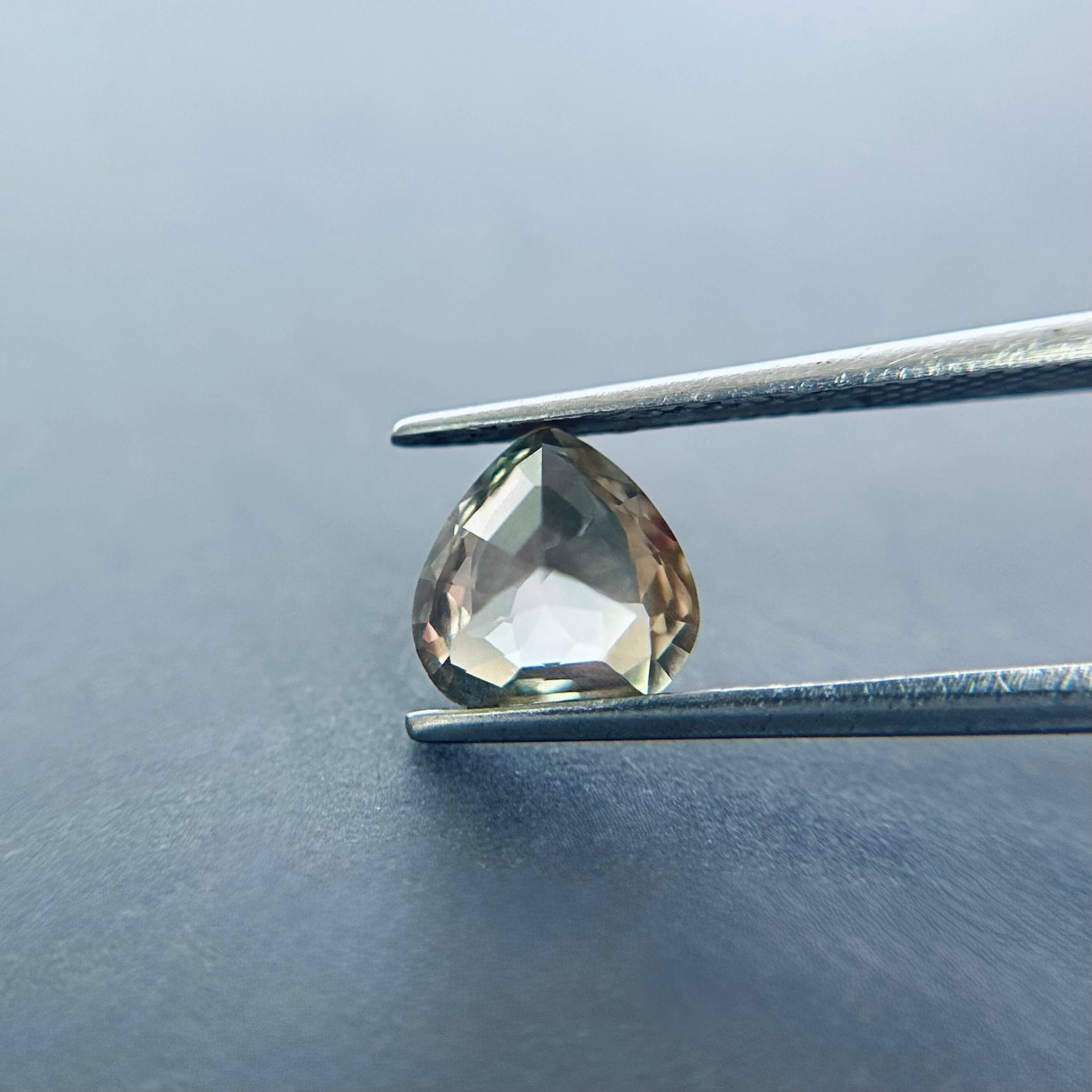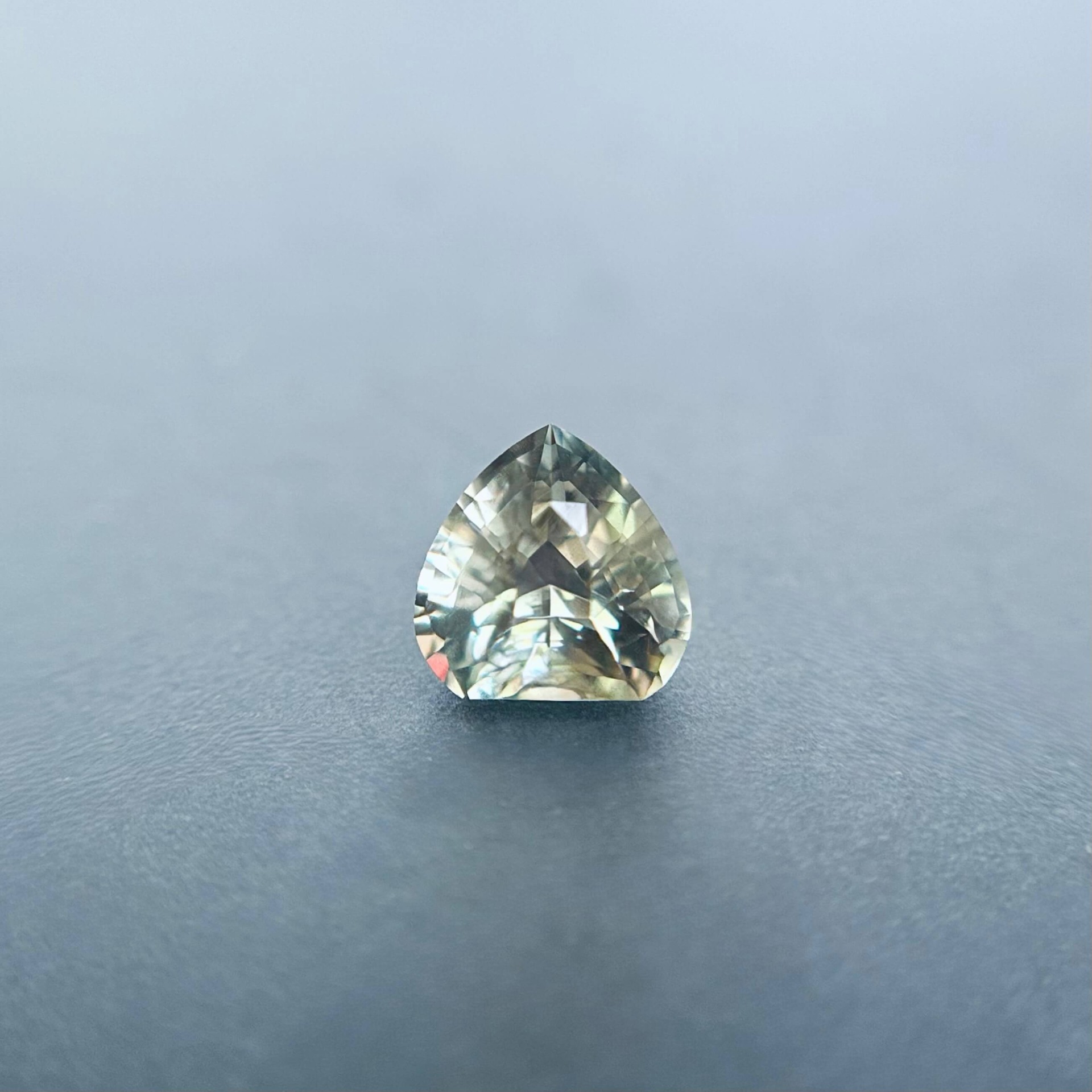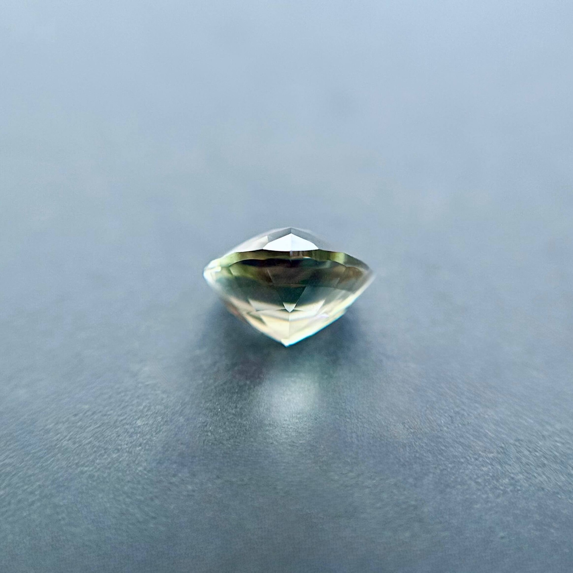 本件作品產自美國南奧勒岡州 Pana Mine 礦區,該區以產出高品質、色彩多變的太陽石聞名。此顆 1.49 克拉寶石在不同觀察角度與光線條件下,呈現淺海沫綠色與柔粉色之間的自然轉換,色調輕盈且帶有細膩層次,形成近似水面反光般的柔和色彩變化。