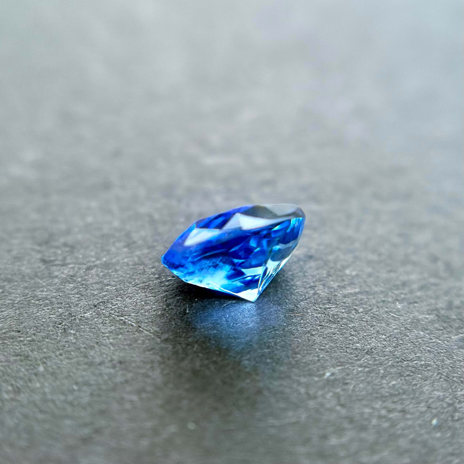 這顆 0.99 克拉藍寶石,產自斯里蘭卡——全球公認最具代表性的高品質藍寶石產地之一。其藍色調並非濃重深沉,而是帶有清澈感的純正藍色,在自然光與日常光源下皆能展現穩定而耐看的色澤表現,這正是錫蘭藍寶石長久以來備受藏家青睞的原因。