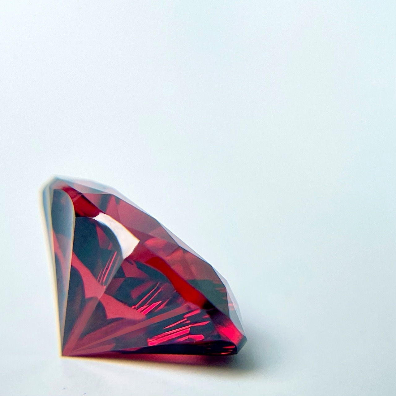 • 質|這是出自於 Umba 河谷流域一帶所產出的馬來亞石榴石,皆屬於東非 East Africa,最早此地原開採藍寶石,在開採中無意發現此地蘊藏大量非傳統紅色的石榴石,但當時人們沒見過非紅色以外的石榴石,由於當時也沒有這種石榴石的市場行情,工人一旦開採出這種榴石後便生氣地將其扔回河谷中不要也罷。故當地採礦工人皆稱之為 Malaia,土話翻譯為棄婦。在當時這種稱呼極為不雅,而「馬來亞」在現代聽起來則是非常異國感十足。與Umbalite 不同的是,Umbalite 多屬於鎂鋁石榴配上另一種化學元素,而馬來亞則是會有3種同時如 - 鎂鋁+鎂鐵+錳鋁 混血而成,按照當中各種元素的消長而具有多種色調,有些是橘色系,有些是亮紅系...等各種紅~黃都可能出現。也由於組成成分複雜,因此在石榴家族中馬來亞榴石算是罕見品種,而像這一枚如此大顆且超高淨度的馬來亞榴石,在千禧車工下火彩滿溢、光芒四射,是一極難能可貴的閃耀寶石。馬來亞石榴石的摩式硬度與其他石榴石相同為7.5,是作為寶石來配戴的極佳素材