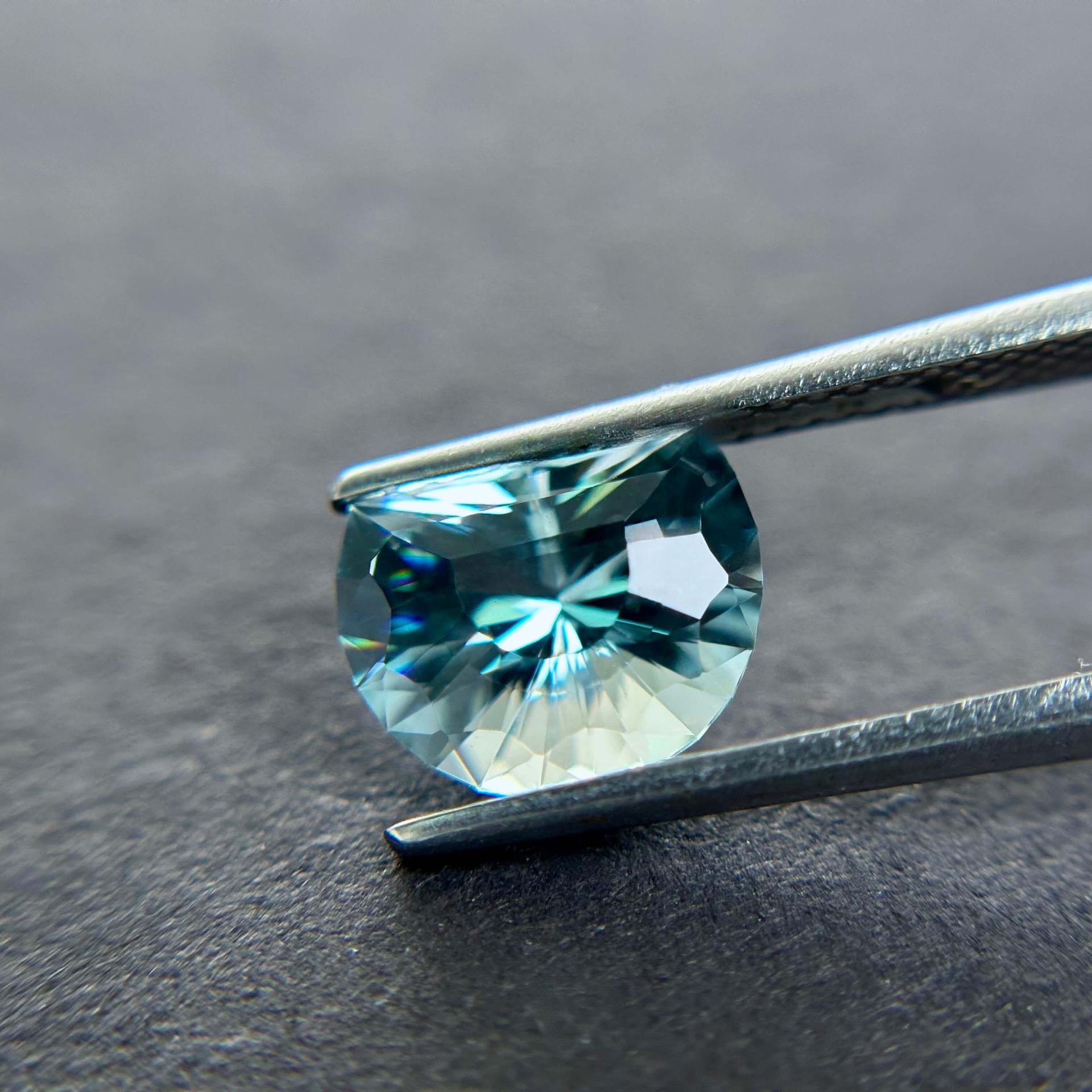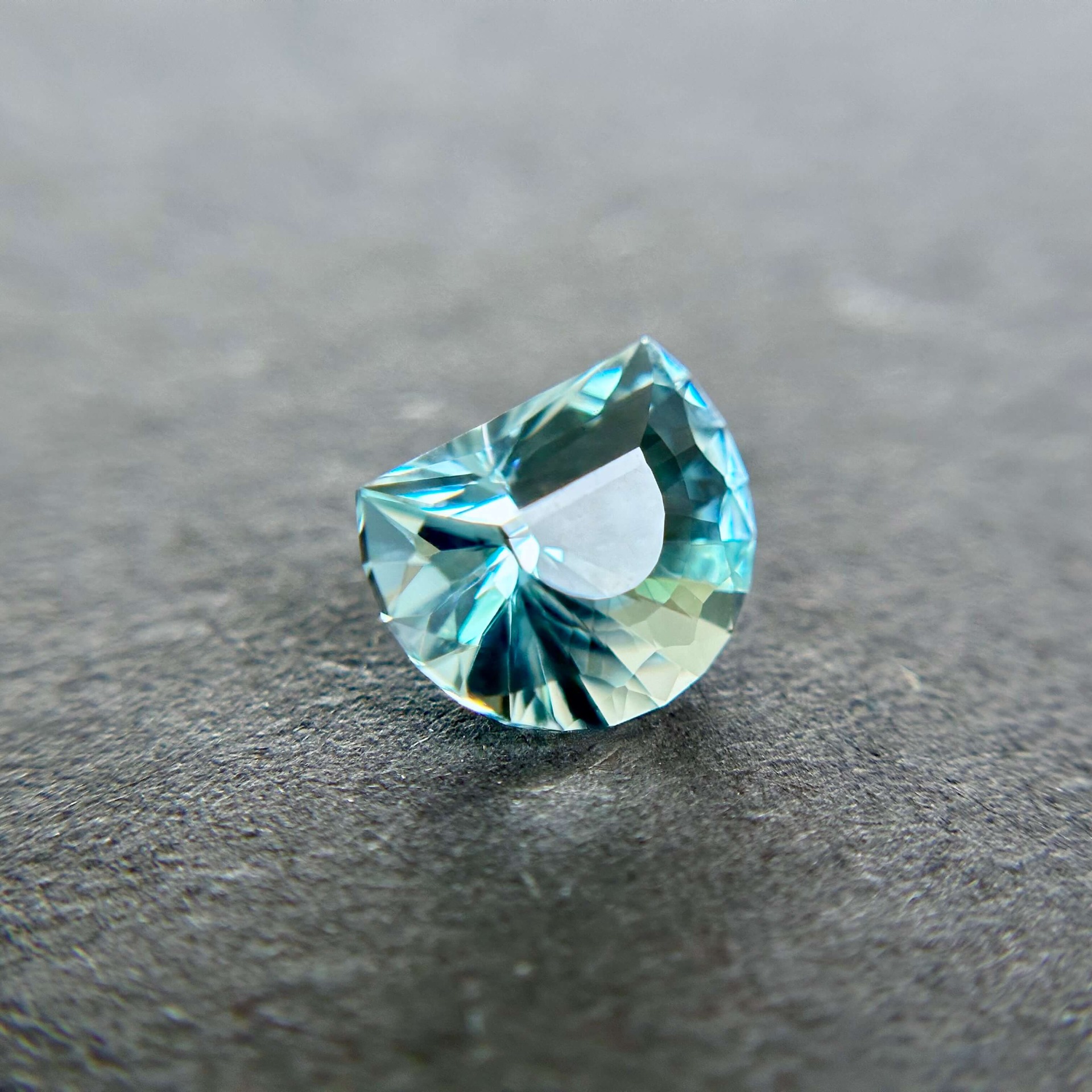 10. 評|藍色托帕石在市場上多以輻射或加熱處理後的濃藍色調為主,而天然呈色、且未經任何加熱與人工處理者,實屬少見。此顆產自奈及利亞之無燒藍色托帕石,呈現柔和而清澈的淺藍色調,色澤自然通透,帶有如晴空般的純淨感,非後天處理所能複製。其淨度達 Flawless 等級,在托帕石中尤為罕有,光線進入後可完整折射,展現乾淨而俐落的晶體光澤。莫氏硬度達8,具良好耐磨性,適合日常佩戴亦具收藏價值。再配合設計師高端半月造型切工,使寶石線條更具現代感與藝術性,兼具天然稀有性與設計感,是一顆兼顧佩戴性與收藏性的優質天然藍色托帕石。