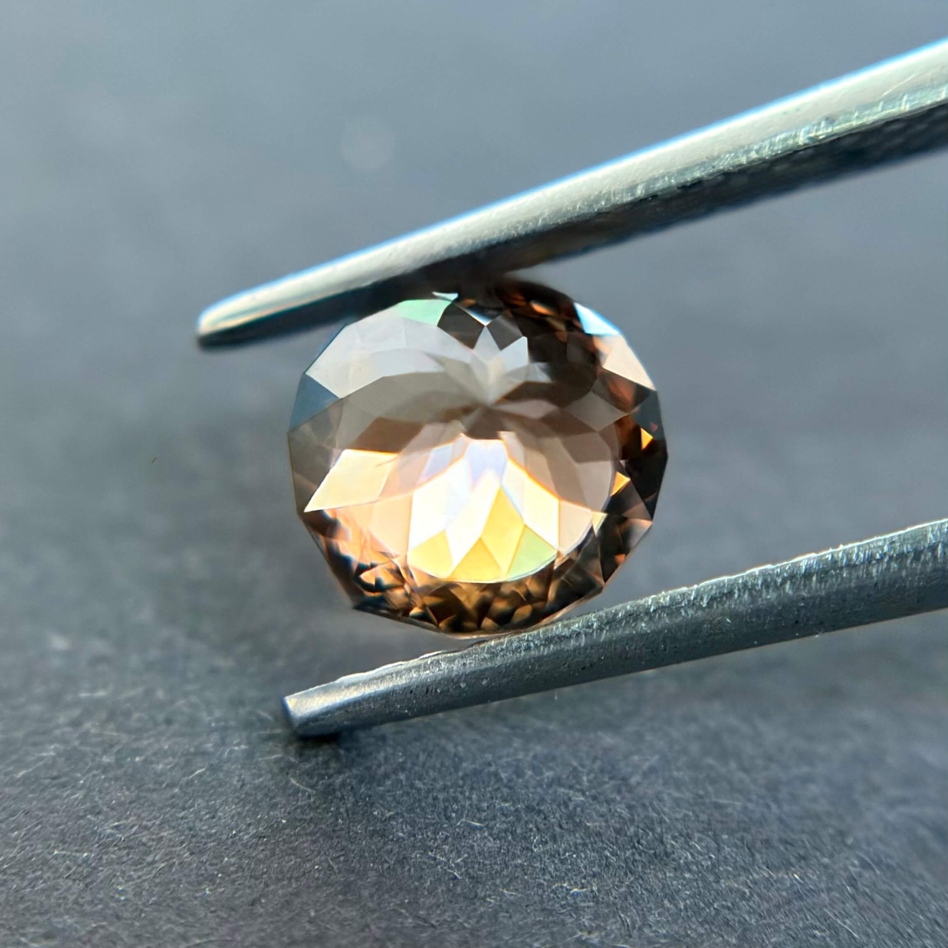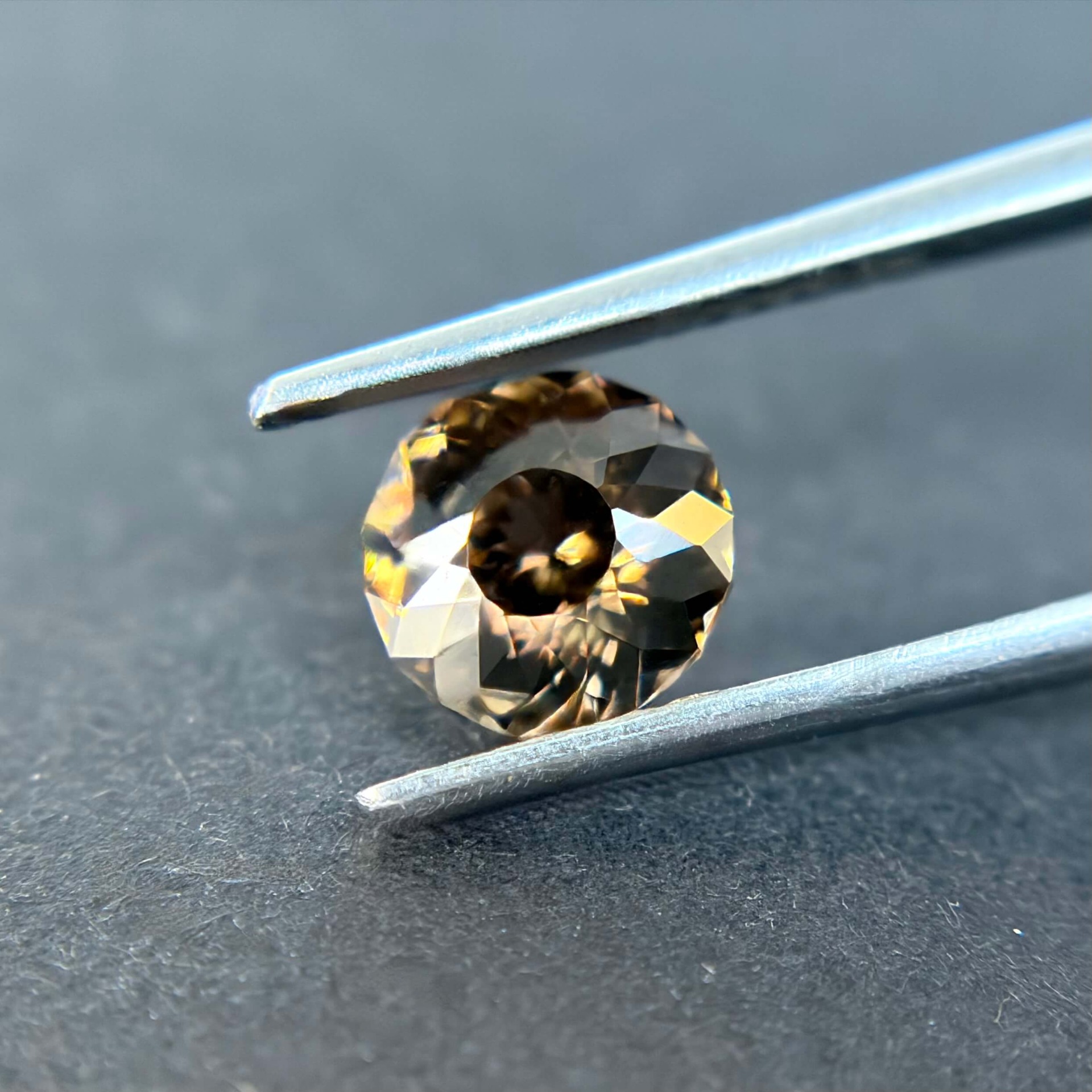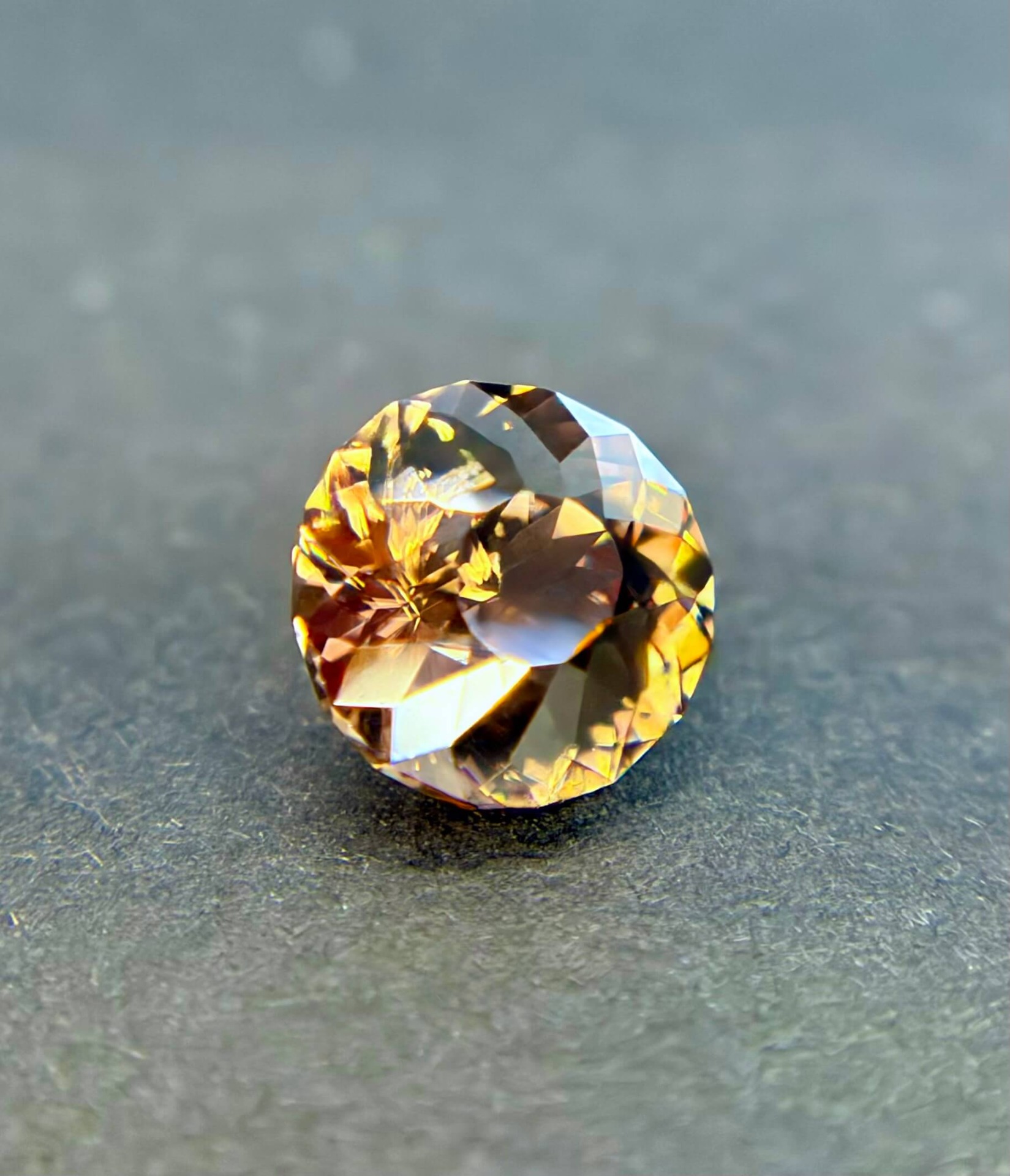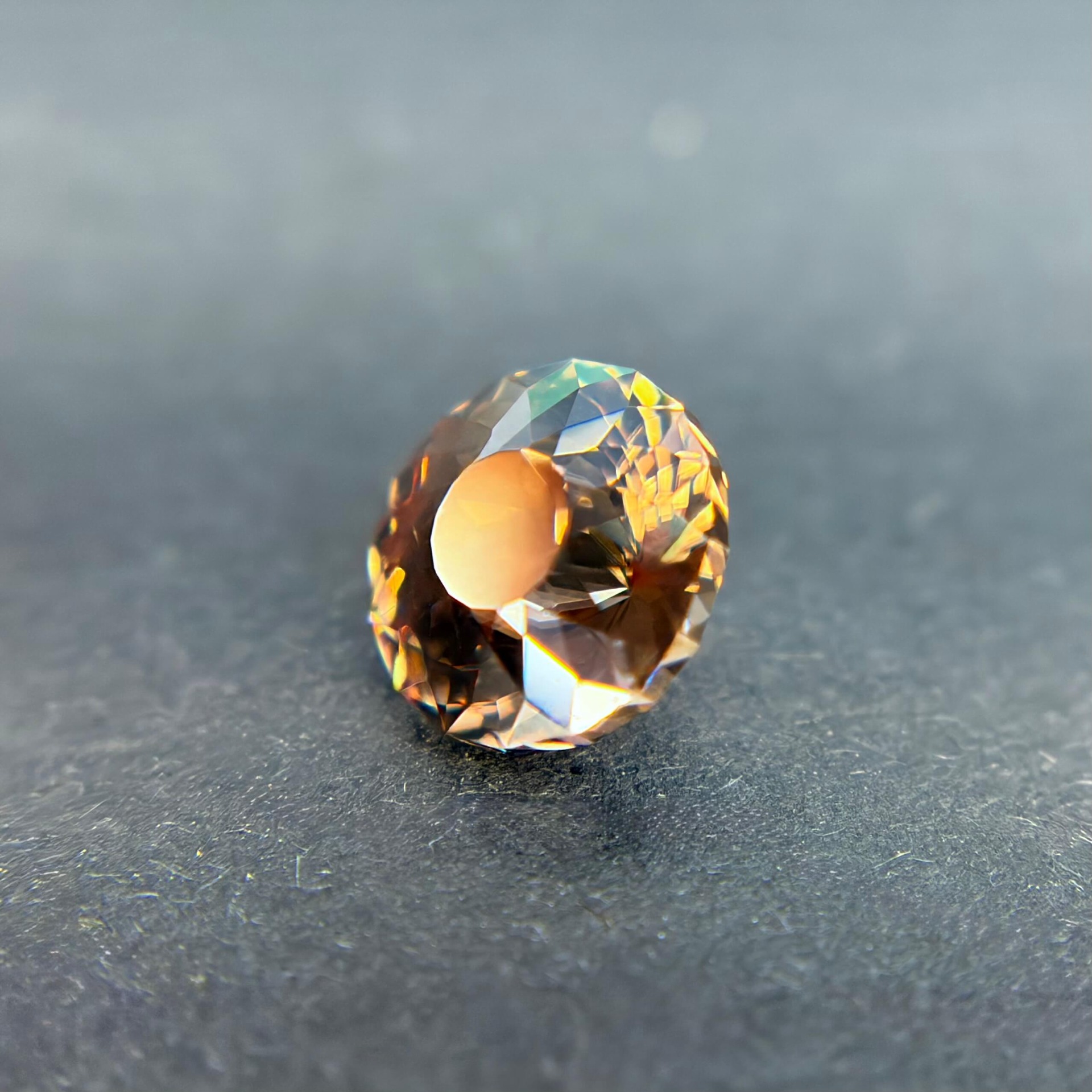 鋯石為天然高折射率寶石,其火彩與亮度常被譽為「天然寶石中最接近鑽石者」,在光線下可展現強烈色散效果。相較市場常見的藍色熱處理鋯石,此顆來自奈及利亞之褐香檳色鋯石為純天然無燒狀態,色澤溫潤而帶金褐光感,兼具成熟與優雅氣質,屬較少見之自然色系。其淨度達 FL 等級,使火彩表現不受包裹體干擾,整體光感乾淨銳利。鋯石亦為古老寶石之一,地質年齡可追溯至數十億年前,具有獨特的收藏意義。此顆搭配設計師款圓形切工,使火彩集中、亮度提升,兼顧佩戴實用性與鑑賞價值,為少見兼具天然性、完美淨度與高火彩表現的收藏型鋯石。