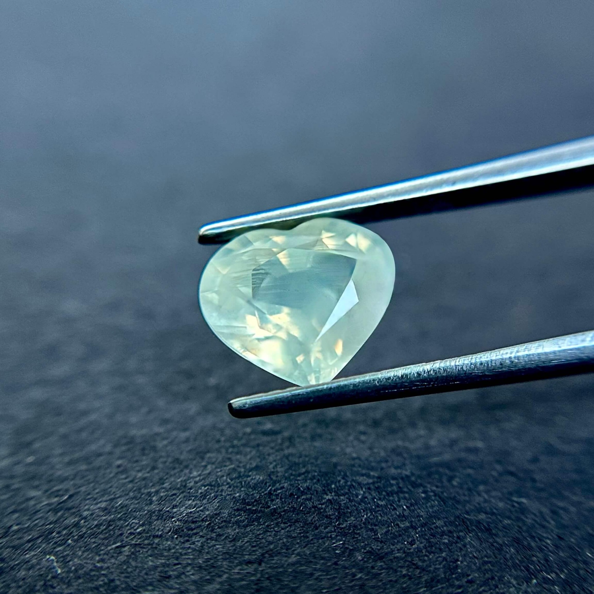 出自坦尚尼亞檀多魯的金綠寶石,產地既知名又偏遠,堪稱異域珍稀之作。這枚花式心形切工比例完美,弧度流暢對稱,光影之間綻放出柔潤絲絨般的細膩光輝。淡黃的主色調襯以細緻雲霧狀包裹體,使寶石流露出如晨光灑金般的溫潤質感。金綠寶石的晶質細膩、光韻內斂,既展現金綠寶石特有的剛毅光華,又多一分柔雅韻味。尺寸罕見、風格獨特,是收藏家理想之選的逸品。