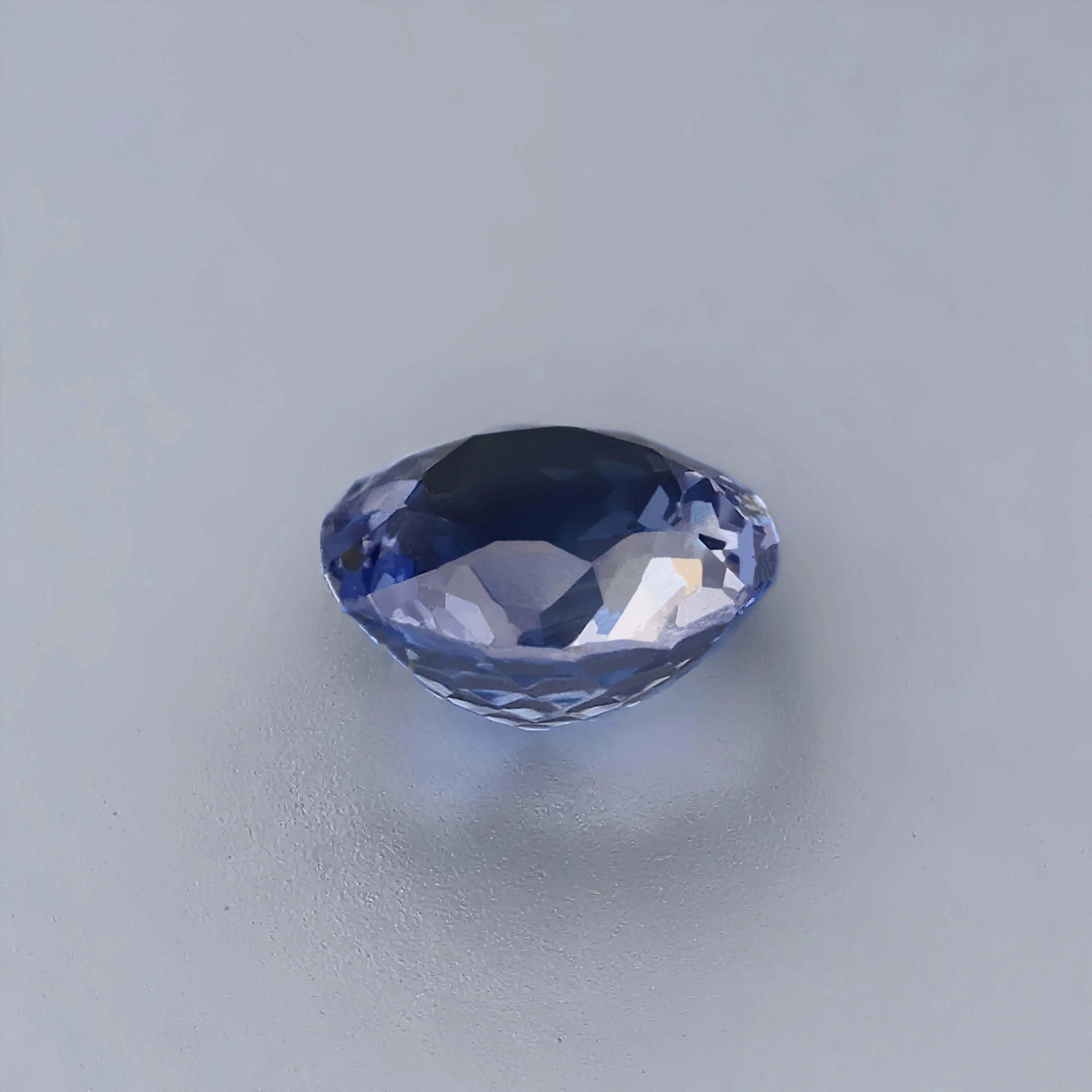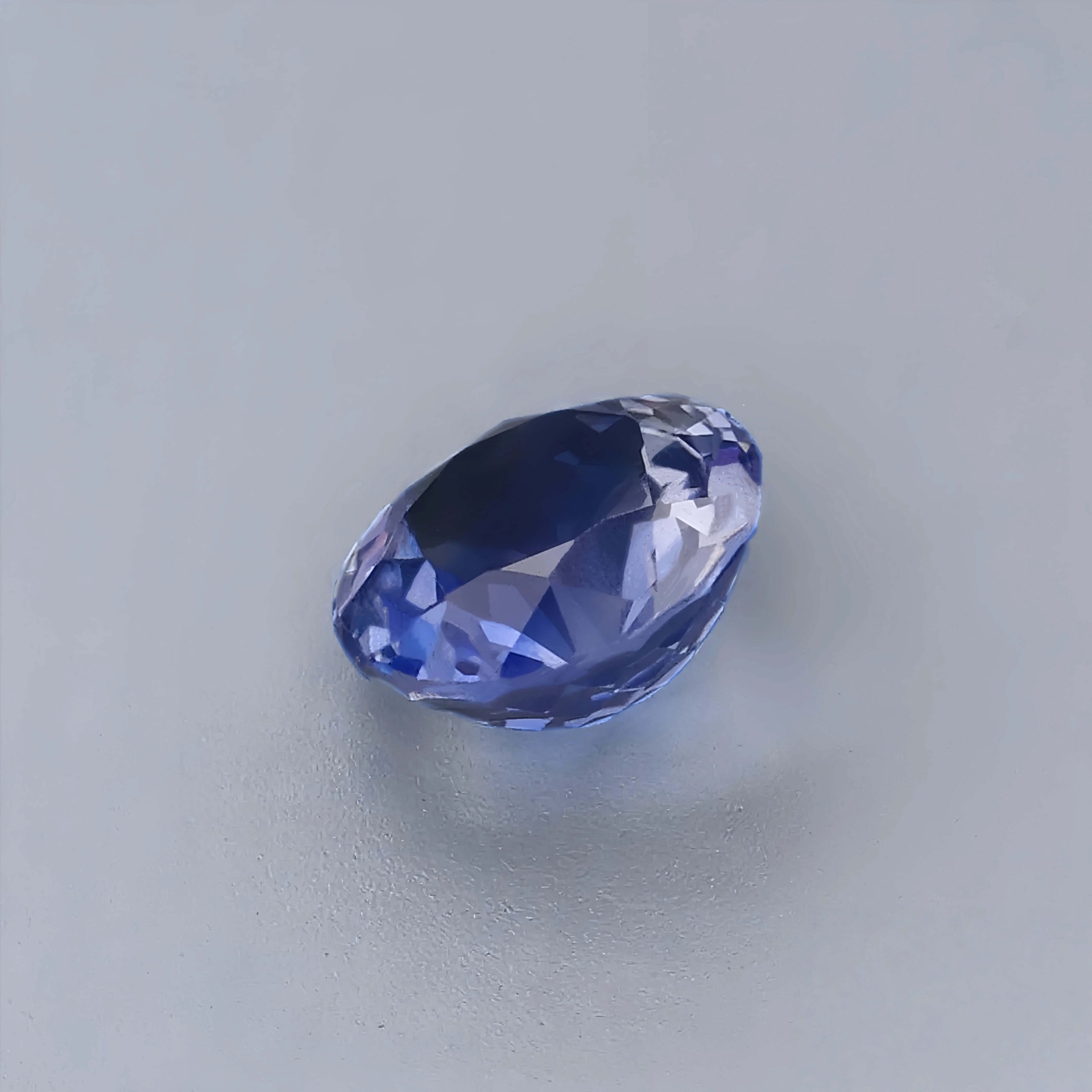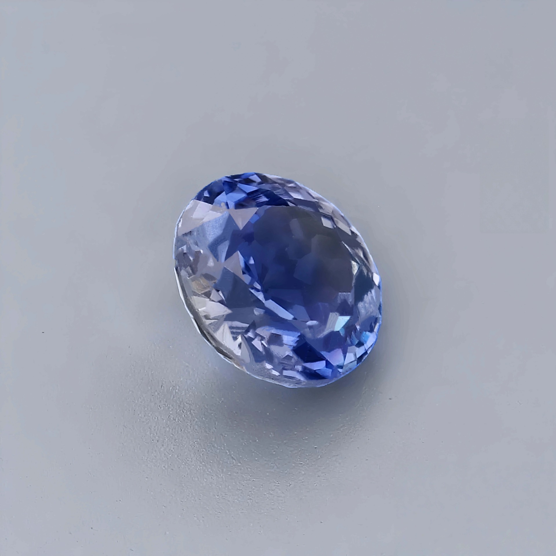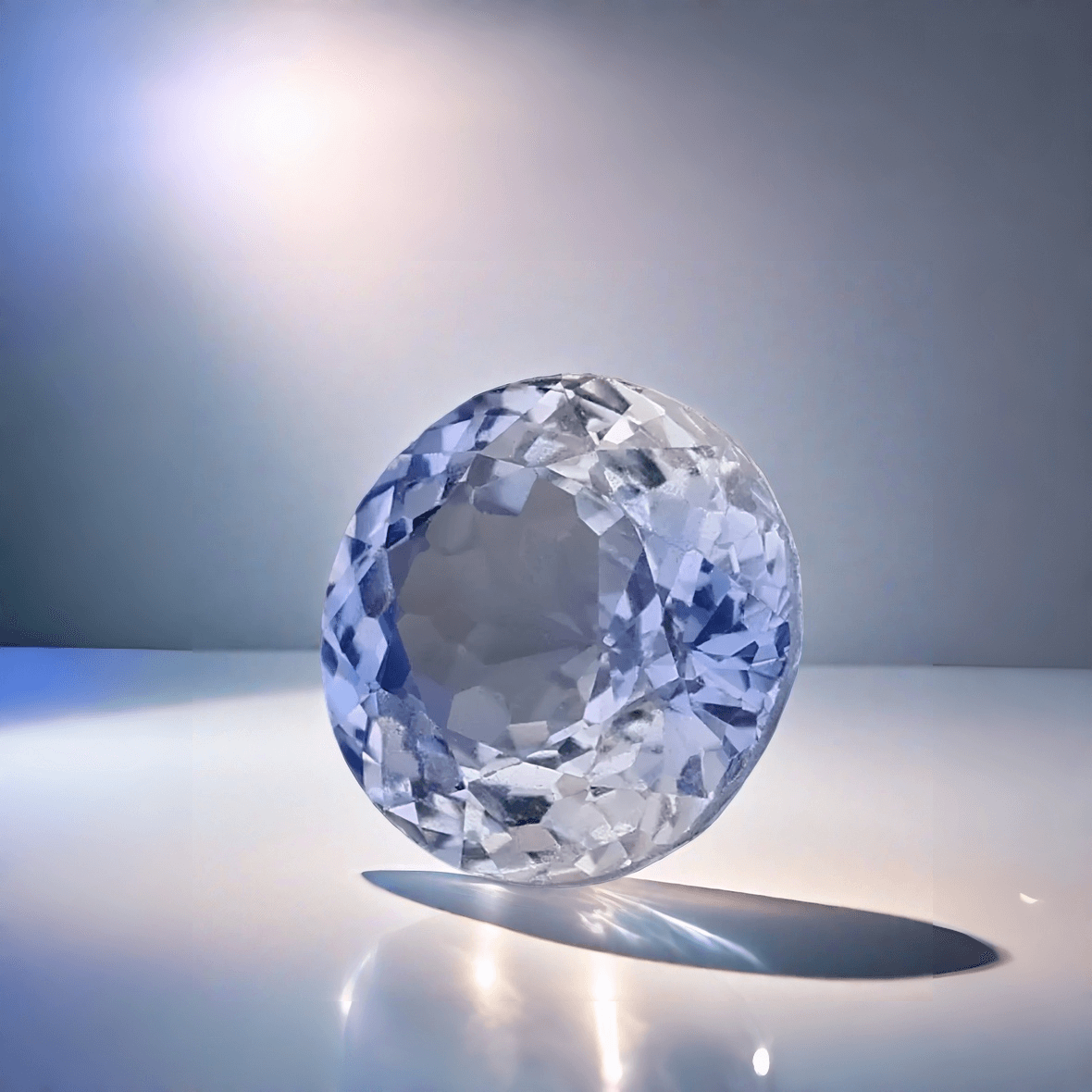 在淨度上達到 VS2 等級,以肉眼觀察幾近完美通透,即便在 10 倍放大鏡下,僅能隱約捕捉到極為細微、如霧般的氣泡包裹體。這樣的細緻透明度,讓藍與白色火彩在寶石內部交織流轉,如同微型的火焰在圓周間緩緩旋舞,耐人尋味。