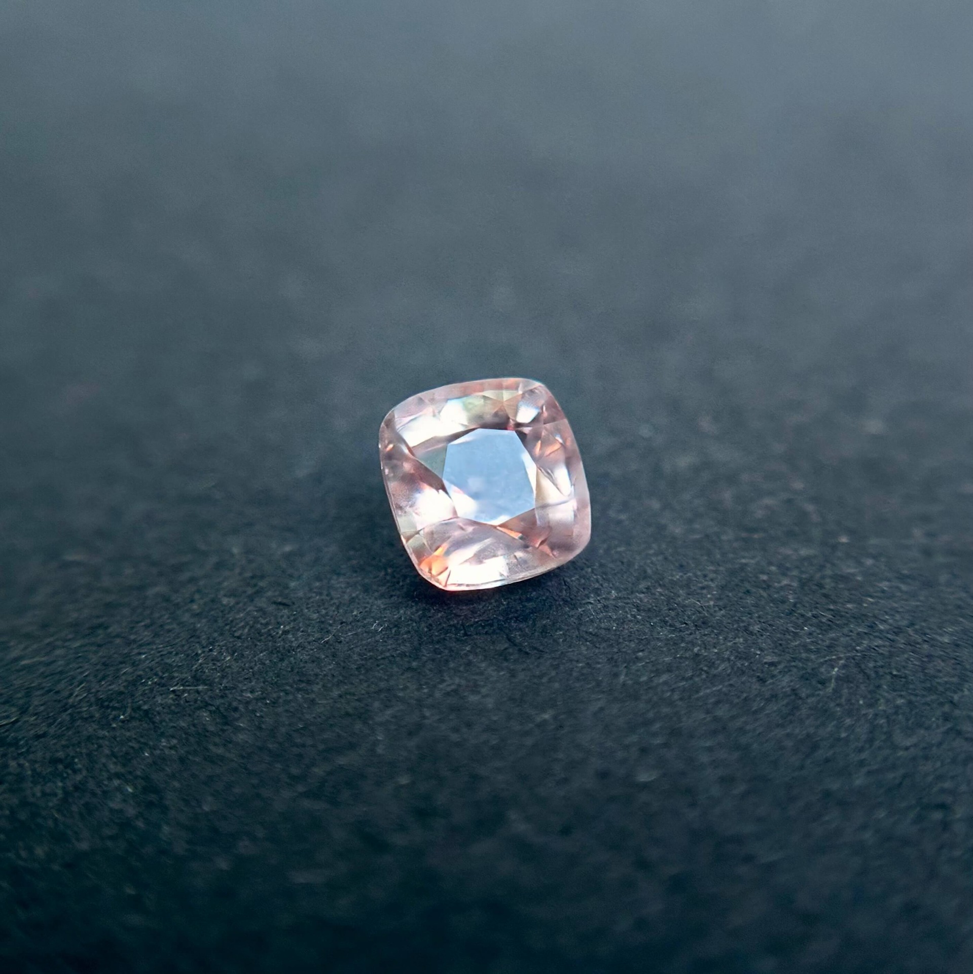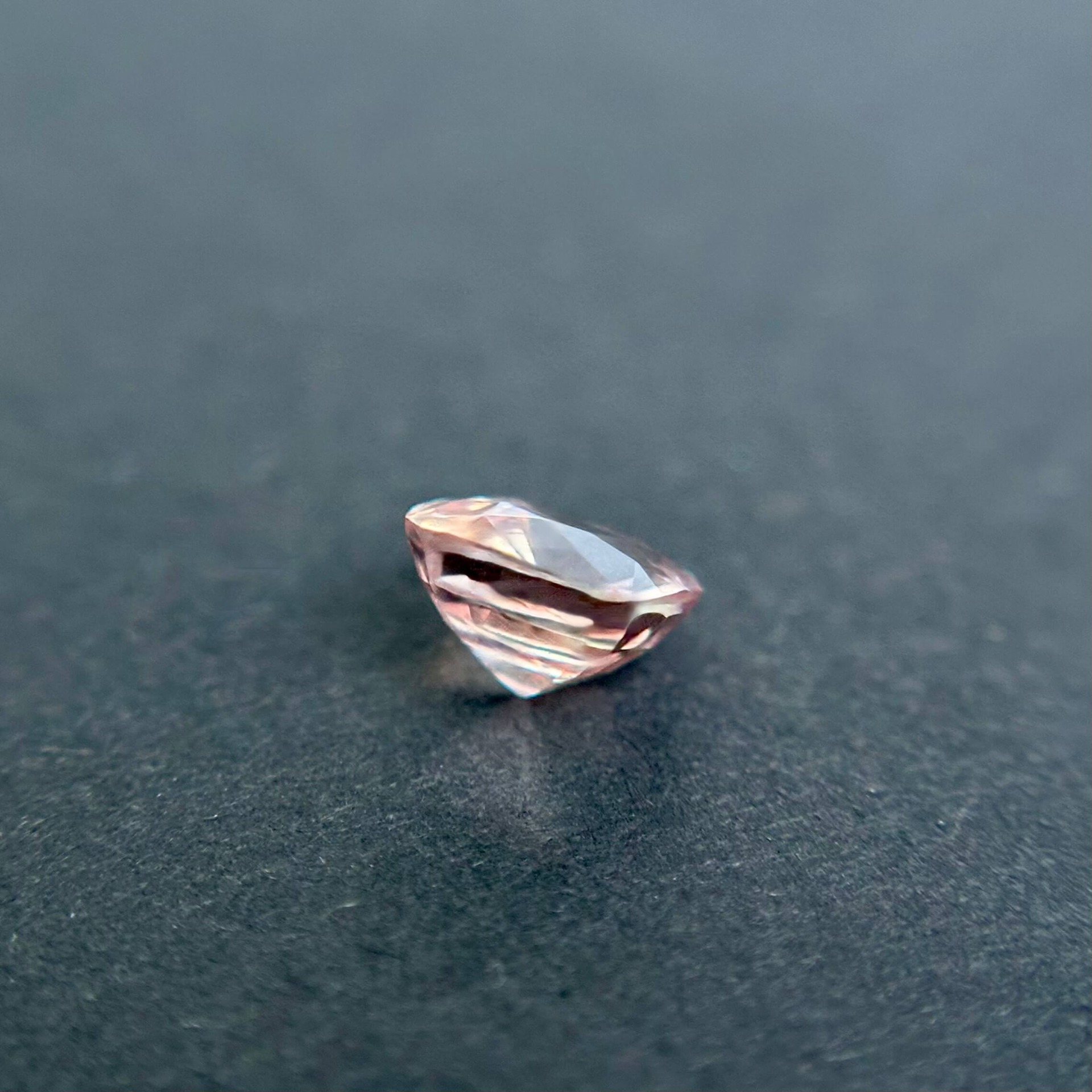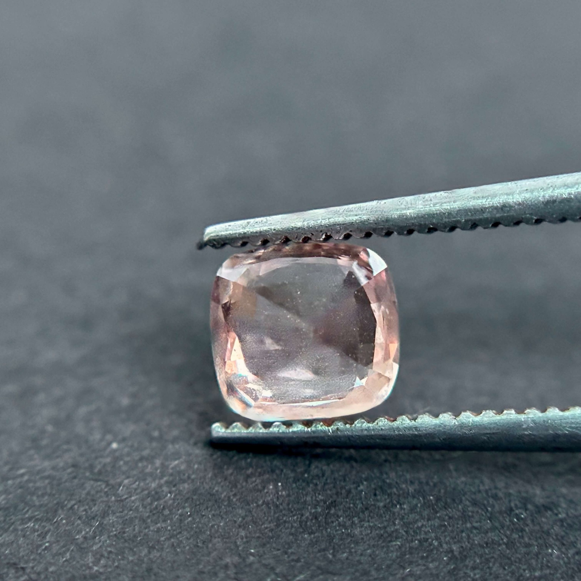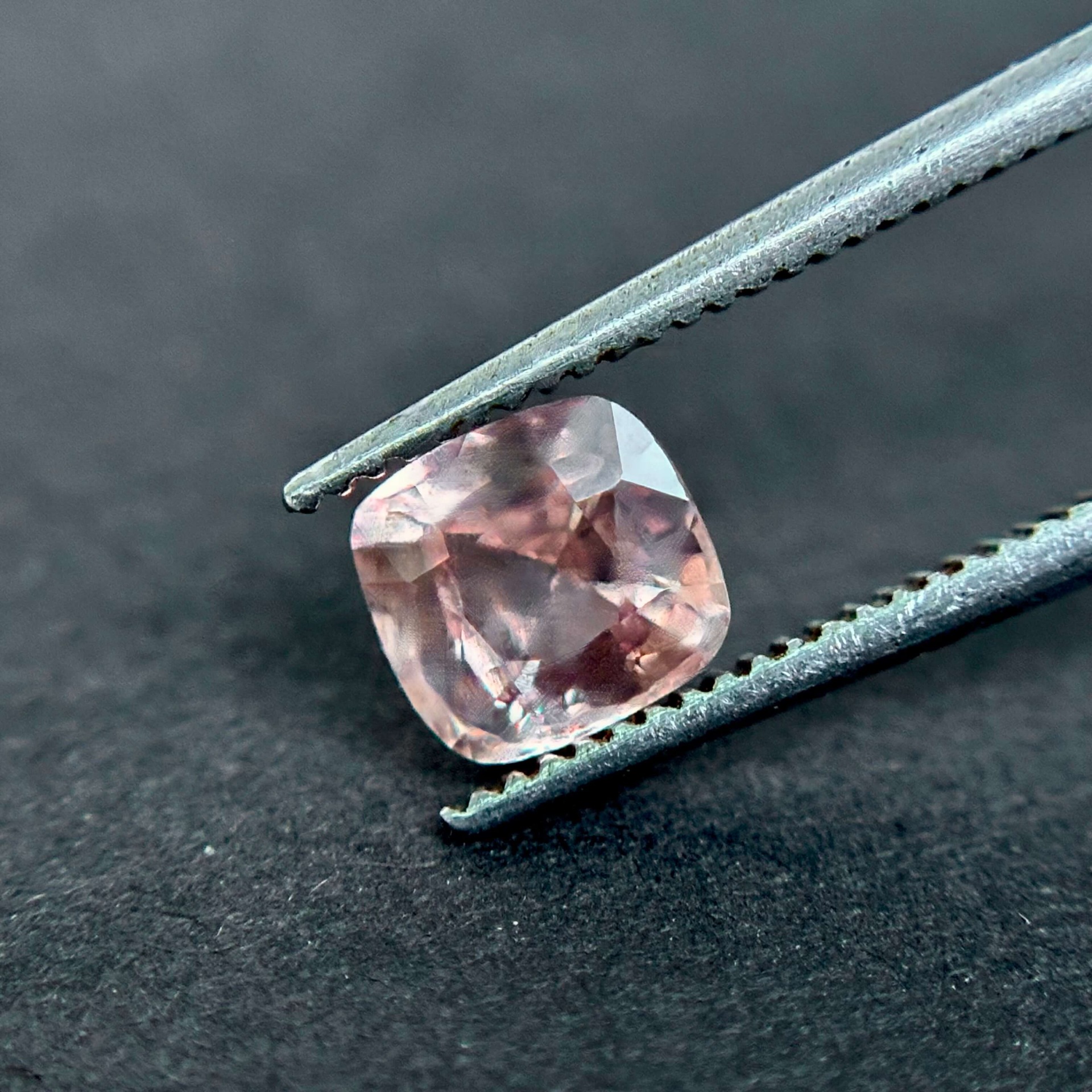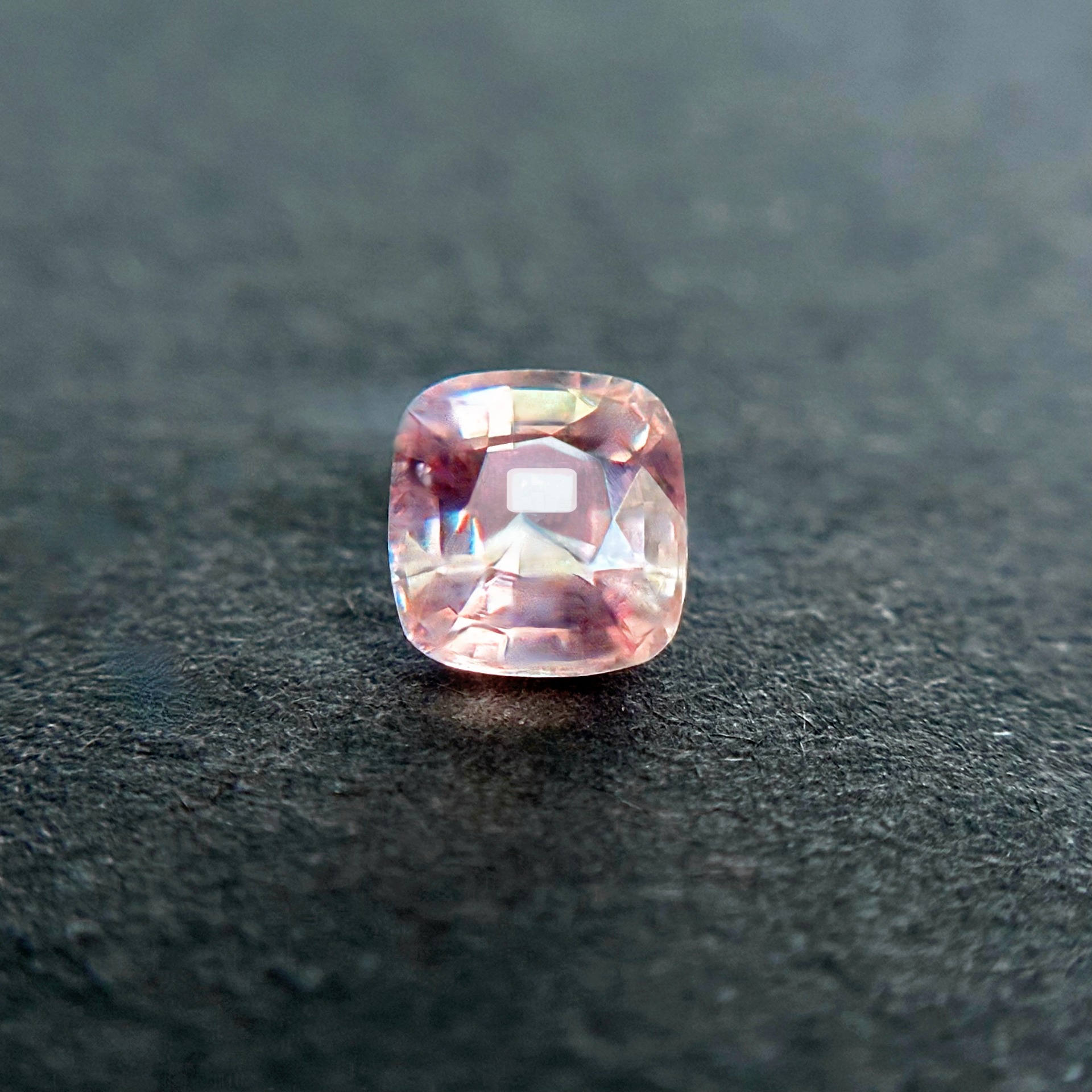 這枚 0.87 克拉的斯里蘭卡蓮花剛玉,展現出極為正宗的粉橙色調——那種恰到好處的「蓮花色」,柔美而飽和,光彩渾然天成。雖然在照片中色調略顯輕盈,但實際觀之,其粉橙交融的色澤濃郁而純淨,正是稀有無比的頂級蓮花姿色。晶質透亮,火光閃爍,即便淨度標示為 SI-1,肉眼卻全然難覓瑕疵,唯有放大鏡下才見極細微包裹體。視覺比例接近一克拉,卻未達溢價臨界,使其兼具收藏與入手的雙重價值。