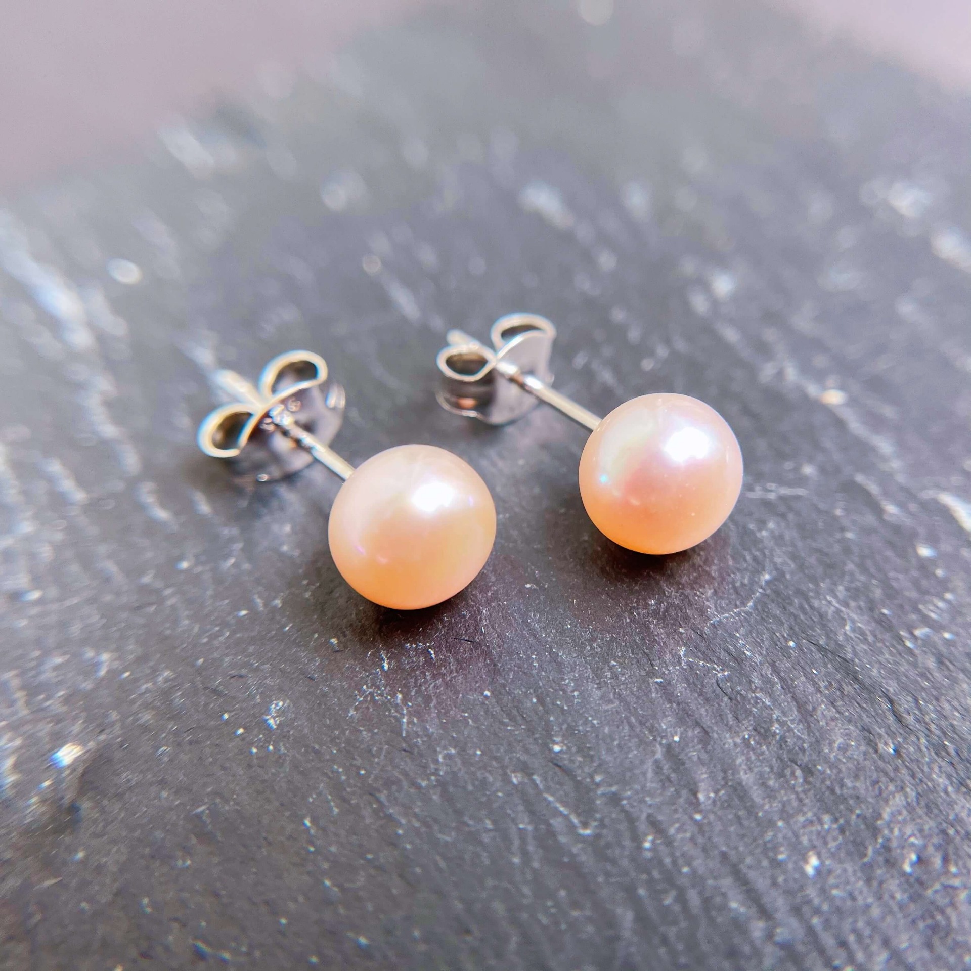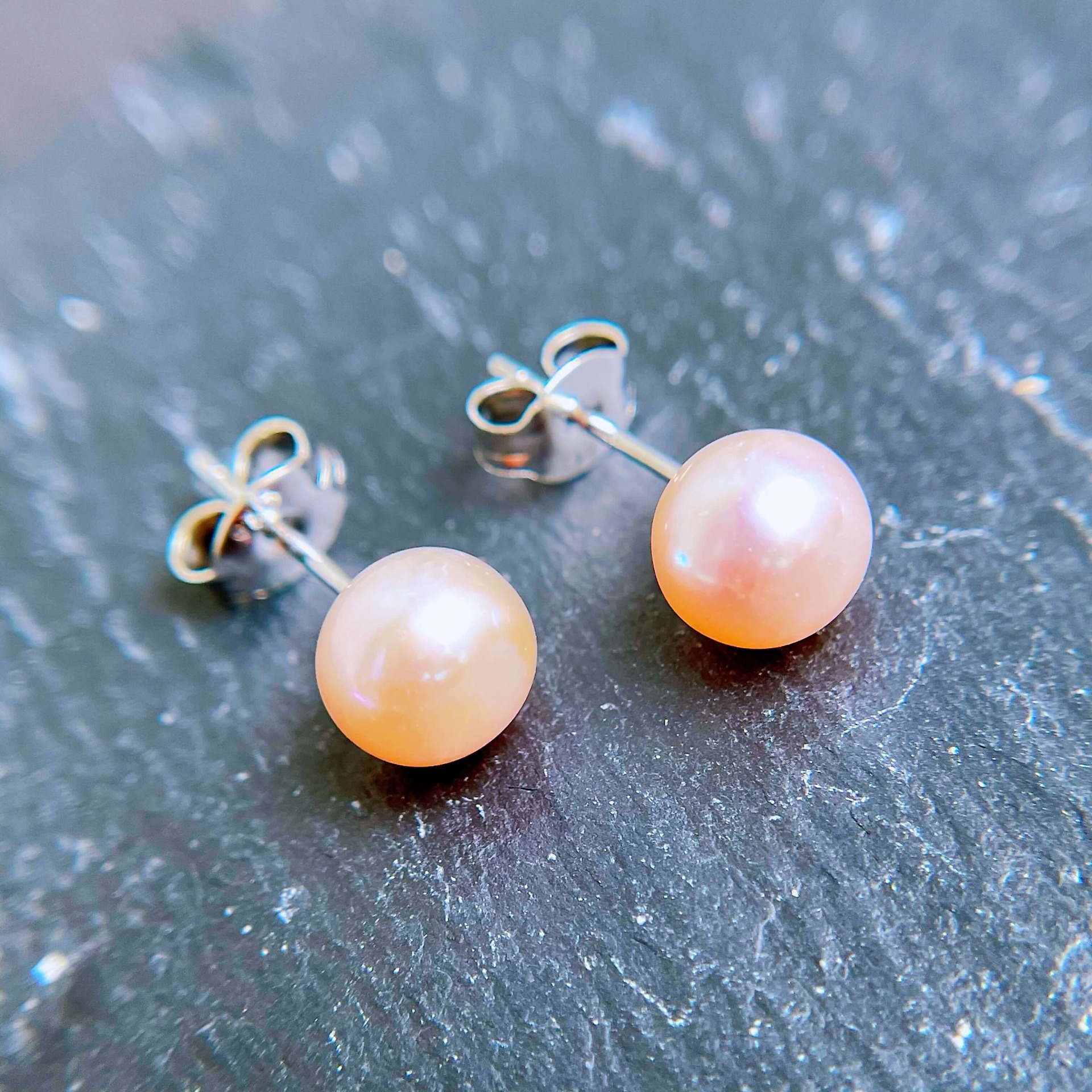 粉紅寶貝珍珠耳釘.一對 直徑 6.5mm|Natural Baby Pink Pearl Stud Earrings