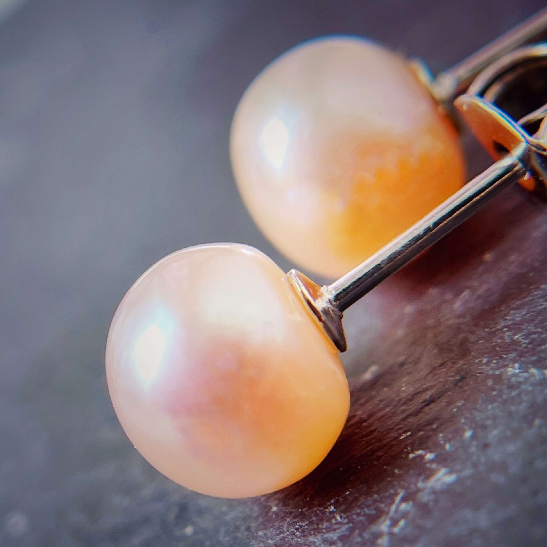 • 質|純淨海水養殖的粉紅色珍珠 2顆,兩只不但厚度非常厚且相較於6mm的看起來像是2倍大,非常堅硬扎實。色澤上屬於金屬光澤,相較於日本 AKOYA的明亮光澤是非常的不同。實際上這一對海水養殖的粉紅寶貝珍珠與日本AKOYA 珍珠的色澤非常類似,都具有鋒利、堅硬與高反射力的外層,散發著相當特別的金屬粉紅光。3000顆的海水養殖珍珠僅能採集到1顆有著金屬光芒,所以這種被稱之為 Metallic 的珍珠的等級都已是 AA+了 [採純銀 925]耳針]