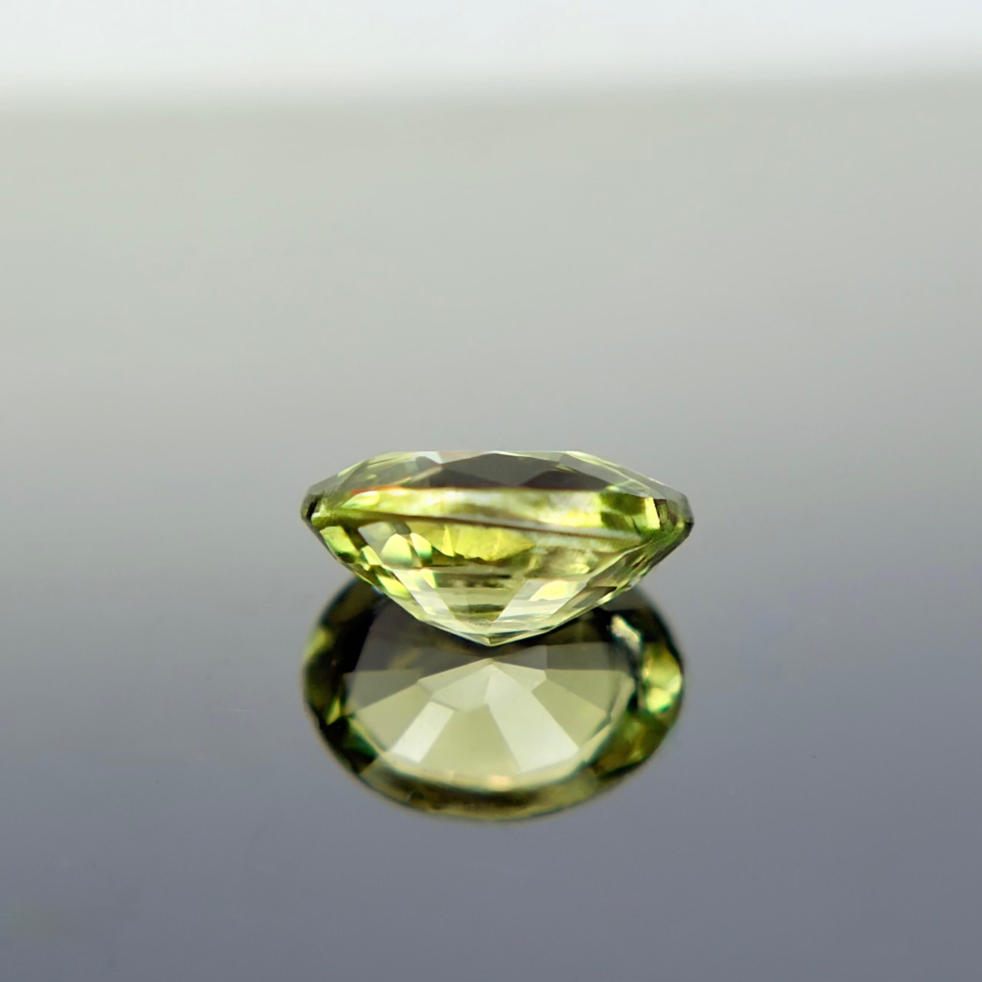 亞歷山大變色石為金綠寶石中極為稀有的變種,其價值核心在於「變色效應(Color Change)」。本件作品在日常室內白光環境下呈現清晰穩定的綠色,而當光源轉為色溫較低的黃光(如白熾燈)時,則轉變為帶紫調的色彩,整體色相轉換明確,屬於變色能力表現優異的類型。