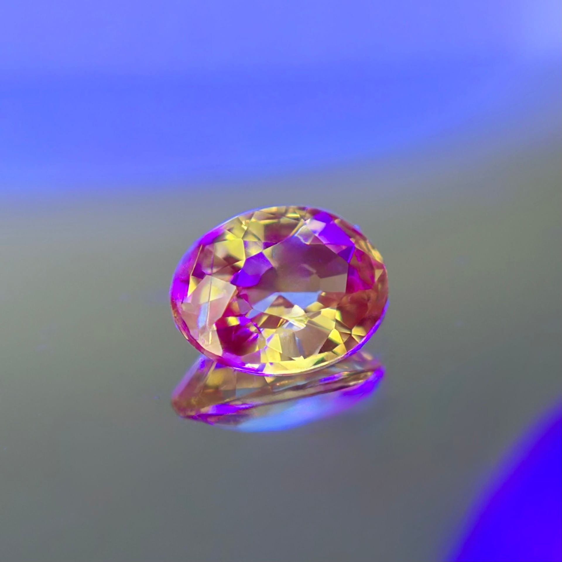 此顆寶石產自斯里蘭卡,為市場上常見且品質穩定的重要來源之一。淨度達 VS1 等級,肉眼觀察下整體乾淨通透,僅於 10 倍放大鏡下可見細微帶狀包裹體,不影響整體視覺與光線表現。橢圓形車工比例勻稱,使光線在寶石內部流動自然,進一步強化變色時的視覺對比與層次。